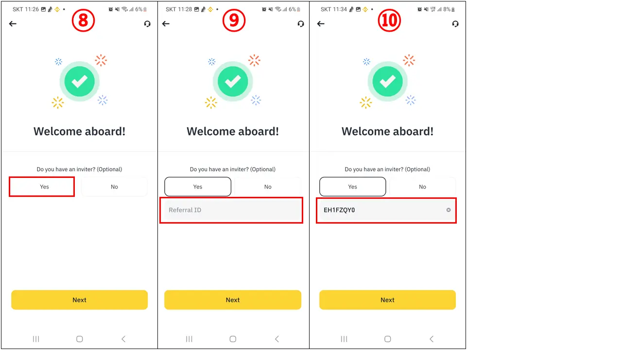 ⑧ 초대한 레퍼럴 ID 있냐는 질문입니다. " YES " 를 클릭합니다.