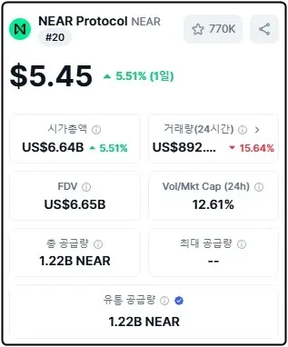 5. 총 공급량 : 1,220,256,688 NEAR
