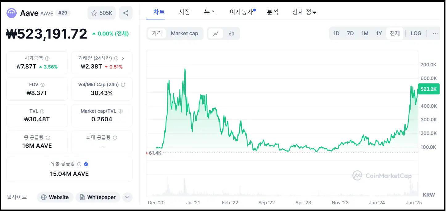 5. 규제 준수 및 글로벌 확장 : Aave는 각국의 규제 환경에 적응하며, 글로벌 시장에서의 입지를 확대하고 있습니다.